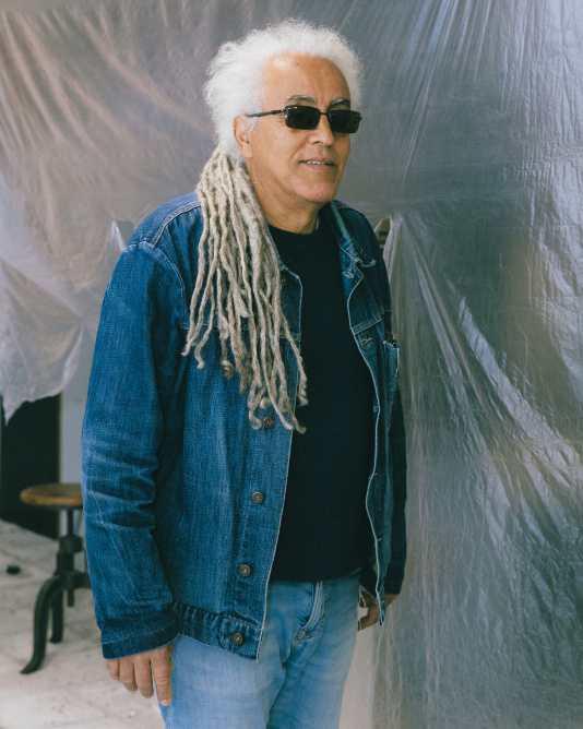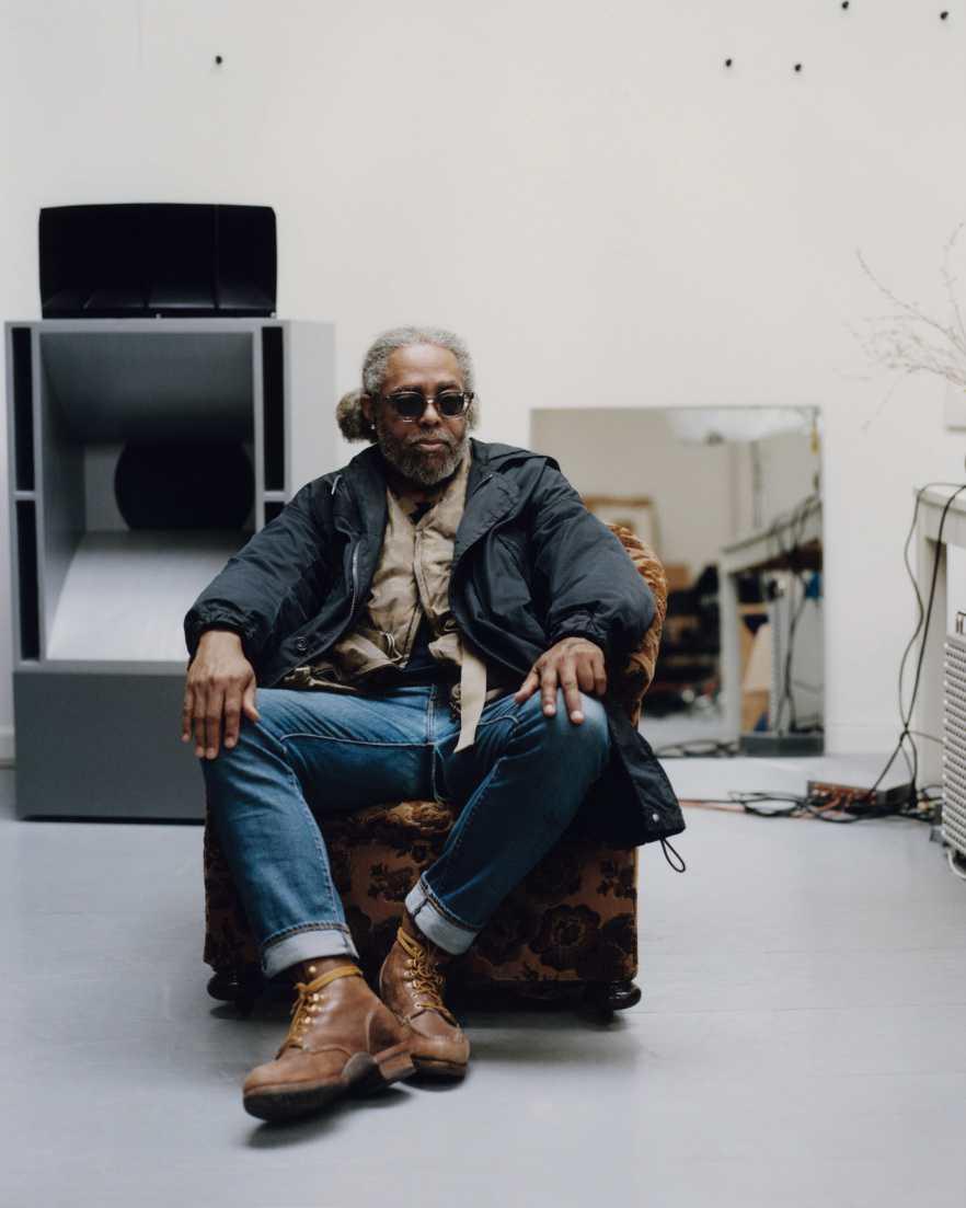 arthur jafa ist ein Künstler, dem ich mich immer schon sehr verbunden fühlte. Als Student in New York hörte ich dann eine Vorlesung von ihm, die mich umgehauen hat. Später lernte ich ihn persönlich kennen, und wir wurden Freunde. Dieses Porträt habe ich in meinem Studio gemacht. AJ sieht hier wirklich aus wie er selbst. Und er ist ziemlich audiophil, der Lautsprecher hinter ihm, den mein Freund Devon Turnbull gebaut hat, passt also sehr gut zu ihm.