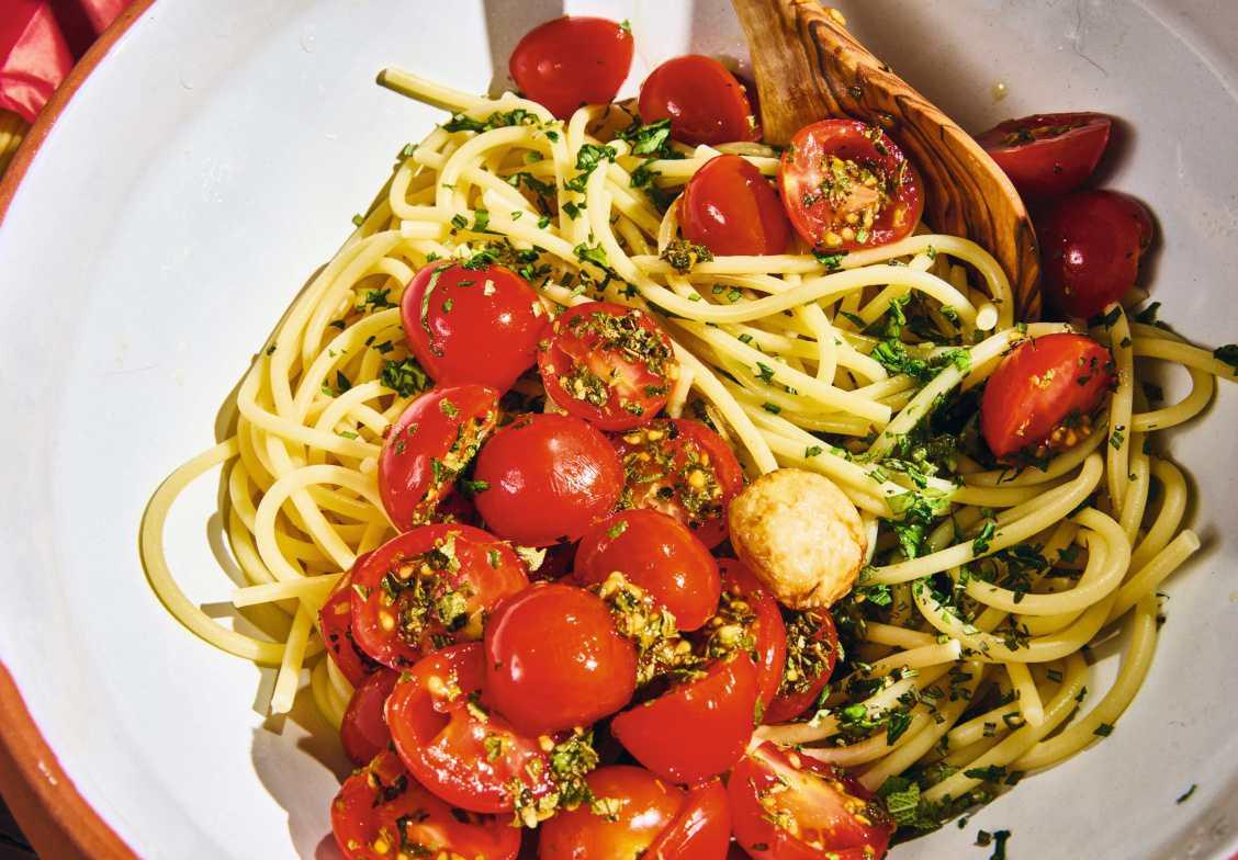 Spaghetti mit den letzten Tomaten und frischen Kräutern
