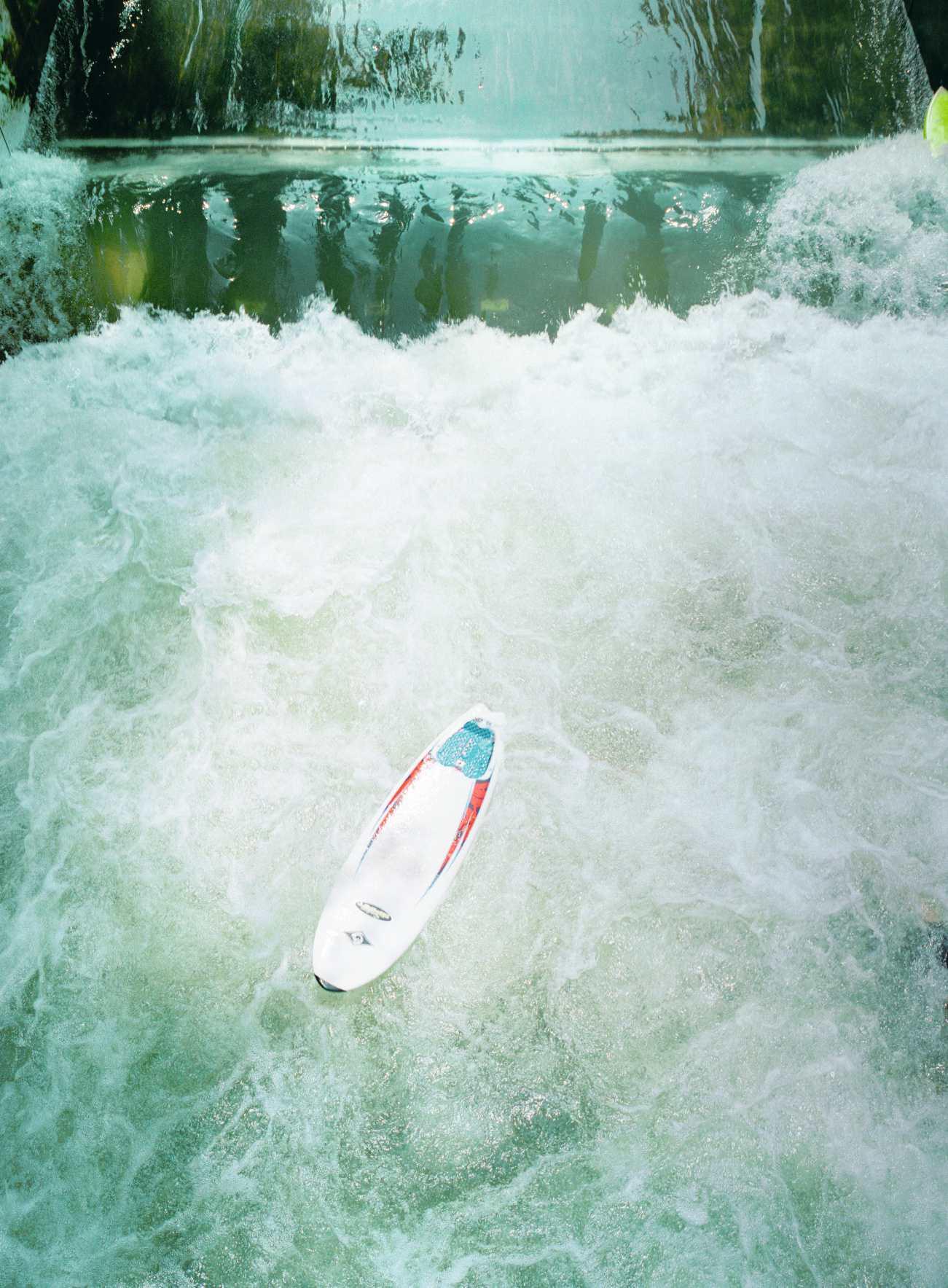 Wetter, schönere Leute und eine schönere Lebensatmosphäre.« (Hervorhebung durch die Redaktion.) Vom Herrn Söder ist aber bekannt, dass er überhaupt den ganzen Rest der Welt für so eine Art Miniaturversion von Bayern hält. Wir machen mal mit. Wir fangen an. Ganz einfach und furchtbar oberflächlich. Wie wäre es also, Verzeihung, mit der Tatsache, dass keine deutsche Stadt eine auch nur ansatzweise so lebendige Surferszene hat wie München? Los Angeles (County) hat Malibu, München hat den Eisbach und die E2 an der Dianabadschwelle, gerade wurde eine gewaltige Surfanlage in Hallbergmoos eröffnet, es gibt Bedarf. Man darf bei all diesen Vergleichen nicht lachen. Oder man darf die ganze Zeit lachen. Es stimmt trotzdem. Wenn man auch noch Huntington Beach zum Einzugsbereich von Los Angeles zählt, hat keine amerikanische Stadt eine bedeutendere Surfkultur als L.A., und es ist nicht ganz falsch zu sagen, dass sie in dieser Hinsicht mit der deutschen bis norditalienischen Surferstadt München korrespondiert. Weiter. Auf dem Weg zur Eisbachwelle ist man gerade vom Hofgarten auf die Prinzregentenstraße gelaufen, durch dieses übrigens ja so glasklare Licht unter dem bayernbabyblauen Himmel der Isarstadt, die sommers heller wirkt als jede andere deutsche und auch in dieser Hinsicht etwas von Kalifornien hat (siehe auch die Fotos zu diesem Text. Der Maler David Hockney fing als Kind übrigens von Los Angeles zu träumen an, weil er im Kino die scharf umrissenen Schatten von Dick und Doof gesehen hatte und daraus gleich darauf schloss, dass es in Kalifornien sehr hell, sehr licht sein musste, ein Rausch für einen Augenmenschen wie ihn. Aber das bayerische Licht zog halt auch viele bedeutende Künstler an, Kandinsky und so weiter). Man hat das Haus der Kunst zu seiner Linken liegen lassen, und dann steht da vor einem, auf dem Trottoir der Eisbachbrücke, einer dieser