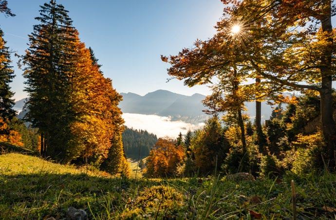 Im äußersten Südwesten Bayerns im Allgäu liegt Oberstaufen am Fuße der Alpen. Aufgrund ihrer abwechslungsreichen Landschaft und ihres Heilklimas ist die kleine Marktgemeinde ein beliebtes Urlaubsziel. Die nahen Berggipfel, Wiesen und Schluchten laden zu ausgedehnten Wanderungen und RadTouren ein. Wegen seiner hervorragenden Servicequalität und Wanderinfrastruktur, die Familien, Natur und Sportfreunde gleichermaßen beglückt, wurde Oberstaufen vom Deutschen Wanderinstitut als PremiumWanderort ausgezeichnet. Der Hausberg von Oberstaufen ist der Hochgrat mitten im Naturpark Nagelfluh, mit 1834 Metern zugleich der höchste Berg im westlichen Allgäu. Auf ihn führt eine nostalgische Gondel mit ViererKabinen, bei klarem Wetter ist der Rundumblick von hier oben atemberaubend.