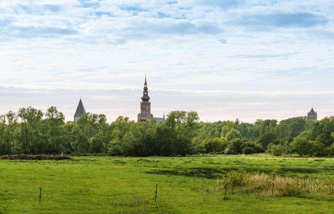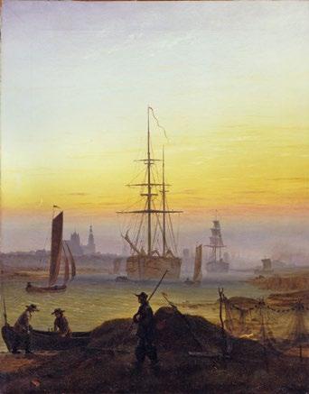 Oben: Von der Storchenwiese aus erscheint die Silhouette Greifswalds wie zu Friedrichs Zeiten. Für den Maler war sie ein beliebtes Motiv, ebenso wie der Greifswalder Hafen (re.) oder die Klosterruine von Eldena (linke Seite).