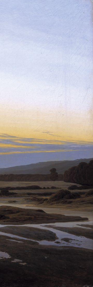Die Alte Nationalgalerie der Staatlichen Museen zu Berlin bewahrt eine der größten Sammlungen von FriedrichGemälden, darunter Ikonen wie den „Mönch am Meer“ (ganz oben) „Der einsame Baum“ (oben) oder die „Frau am Fenster“ (rechte Seite).