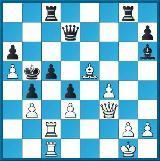 Mit 1.Ld2! Db6 2.a5 Dxb2 3.Lc3! Schwarz gab auf, weil nach 3…Db5 die Springergabel 4.Sc7+! die Dame erobert