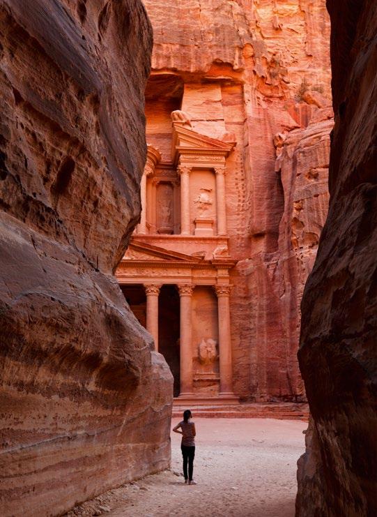 Das Haschemitische Königreich Jordanien ist ein Paradies für Kultur- und Studienreisende. Zahlreiche gut erhaltene Relikte aus dem Altertum und der Antike, von den Nabatäern, Römern, Griechen, Umayyaden und Osmanen, lassen sich hier bewundern. Sechs dieser Stätten gehören zum UNESCO Weltkulturerbe – allen voran die antike Felsenstadt Petra. Jahrhundertelang galt sie als verschollen, heute zählt sie zu den sieben Weltwundern der Neuzeit. Die im 3. Jhdt. v.Chr. gegründete Stadt war ein wichtiger Handelsknotenpunkt der Region, in dem bis zu 40.000 Menschen lebten –dank ausgeklügelter Technik sogar mit fließendem Wasser. Den Eingang zur Stadt bildet der lange Siq, eine schmale, bis zu 100 Meter hohe Schlucht, die am bekanntesten Wahrzeichen von Petra endet, dem Schatzhaus. → visitjordan.com