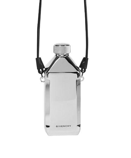 Edelstahl-Trinkflasche von Givenchy mit Logo-Prägung auf dem Verschluss und Trageriemen aus schwarzem Leder. mytheresa.com