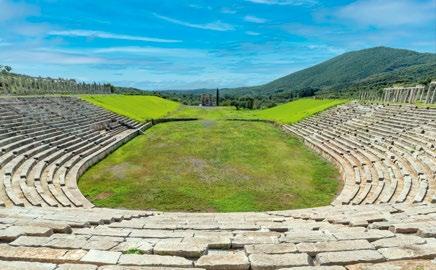 In Messene im Südwesten des Peloponnes ist eines der am besten erhaltenen antiken Stadien (o.) zu besichtigen. Unten: Skulptur aus dem Panathinaiko-Stadion in Athen
