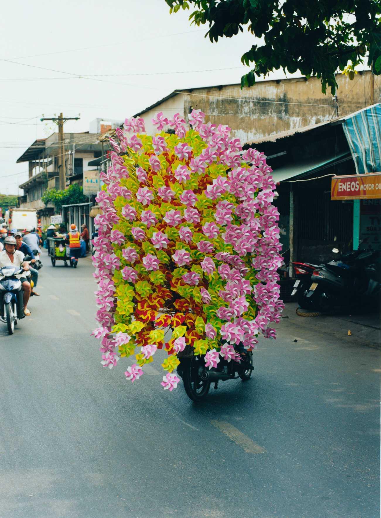 vietnam Ein Roller mit Hunderten Windblumen, den ich mindestens über fünf Blocks durch Ho-Chi-Minh-Stadt gejagt habe