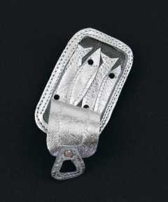 Wie elegant so eine Sardinenbüchse ist, erkennt man an dieser davon inspirierten Lederbrosche (über anne-marieherckes.com)