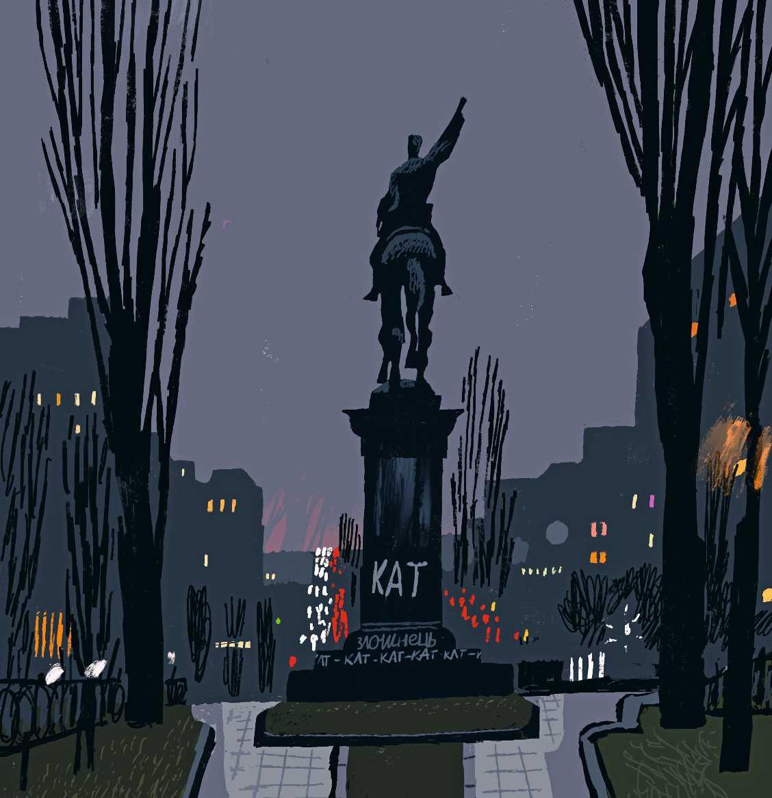 Letztens kam ich abends am Denkmal des sowjetischen Führers Mykola Schtschors vorbei. In Kiew wurden in den letzten Monaten viele solche kommunistischen Denkmäler an Straßen, Bahnhöfen und U-Bahnen demontiert. Das von Schtschors ist mittlerweile das letzte, das noch steht. Anders als die meisten kommunistischen Führer zwischen 1917