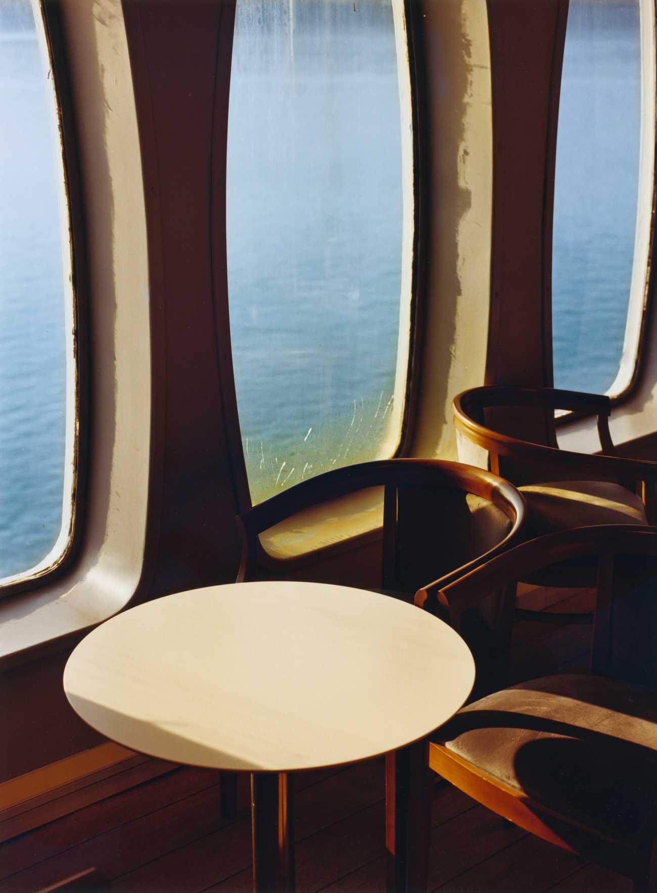griechenland Ein Tisch in der Cafeteria eines dieser alten und verstaubten, aber charmanten Kreuzfahrtschiffe, die zwischen den Kykladen verkehren. Serviert werden Pommes frites und Mini-Eis, während sich die Mägen bei den waghalsigen Hafenanfahrtmanövern des Kapitäns umdrehen