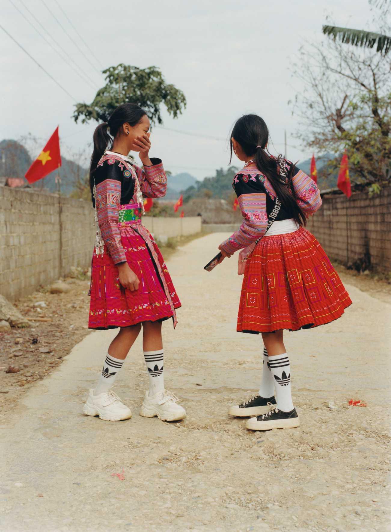 vietnam Zwei Mädchen vom Volk der Hmong haben einen TikTokMoment am Rande der Berge