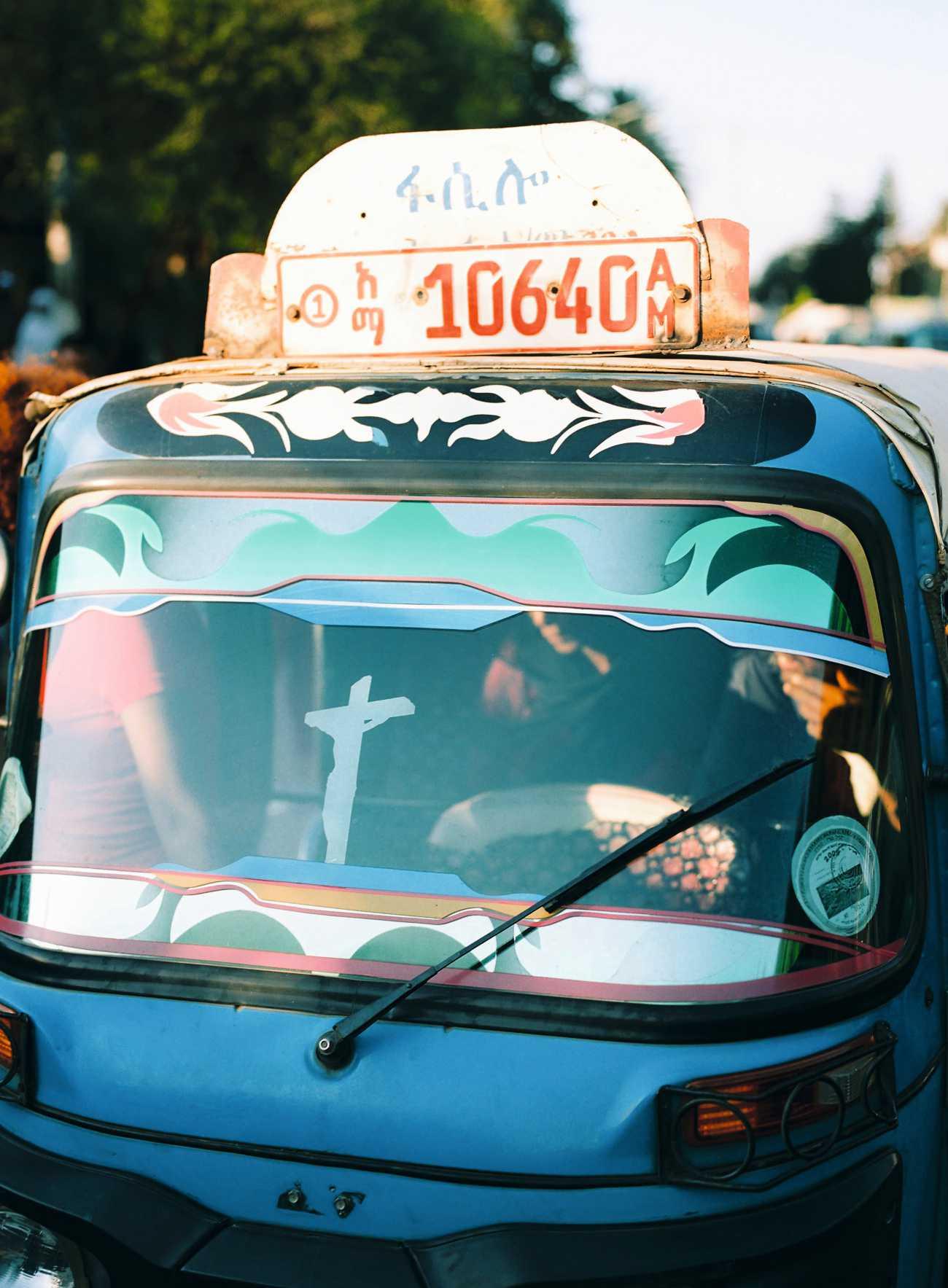 äthiopien Tuk-Tuks in Äthiopiens Hauptstadt Bahir Dar werden je nach Geschmack ihres Besitzers mit Aufklebern verziert