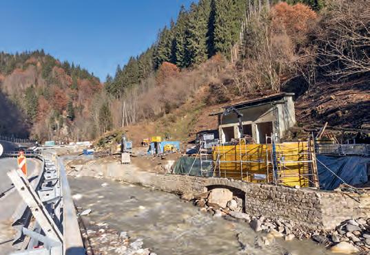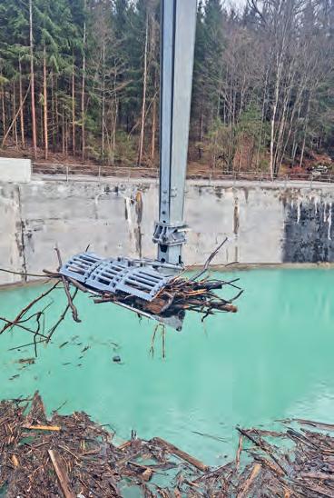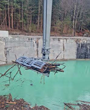 komplette stahlwasser- und maschinenbauliche Modernisierung des Einlaufs am Kraftwerk Weißhaus erhielt. Auch wenn die Anlage nach außen hin unscheinbar wirkt, so handelt es sich beim KW Weißhaus um das größte Kraftwerk der Tiroler Betreiber mit einer jährlichen Erzeugungskapazität von 72 GWh. Aktuell wird das Kraftwerk, angefangen vom Stollen über die Elektrotechnik bis hin zur Turbine, noch einer Modernisierung und Rundumerneuerung unterzogen. Auf dem neuesten Stand der Technik ist der Rechenreiniger, der von der Firma Muhr geliefert wurde und der seine Praxistauglichkeit vor über einem Jahr schon unter Beweis stellen konnte. Baumstämme, Wurzelstöcke und anderes sperriges Treibgut stellen für die neue