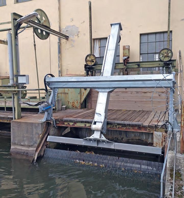gat oder auf Wunsch auch elektromechanische Antriebe. Eine Spezialausführung der Südtiroler stellt der hydraulisch betriebene Gegenrechen dar, der die Reinigung von Tiroler Wehren von innen bewerkstelligt.