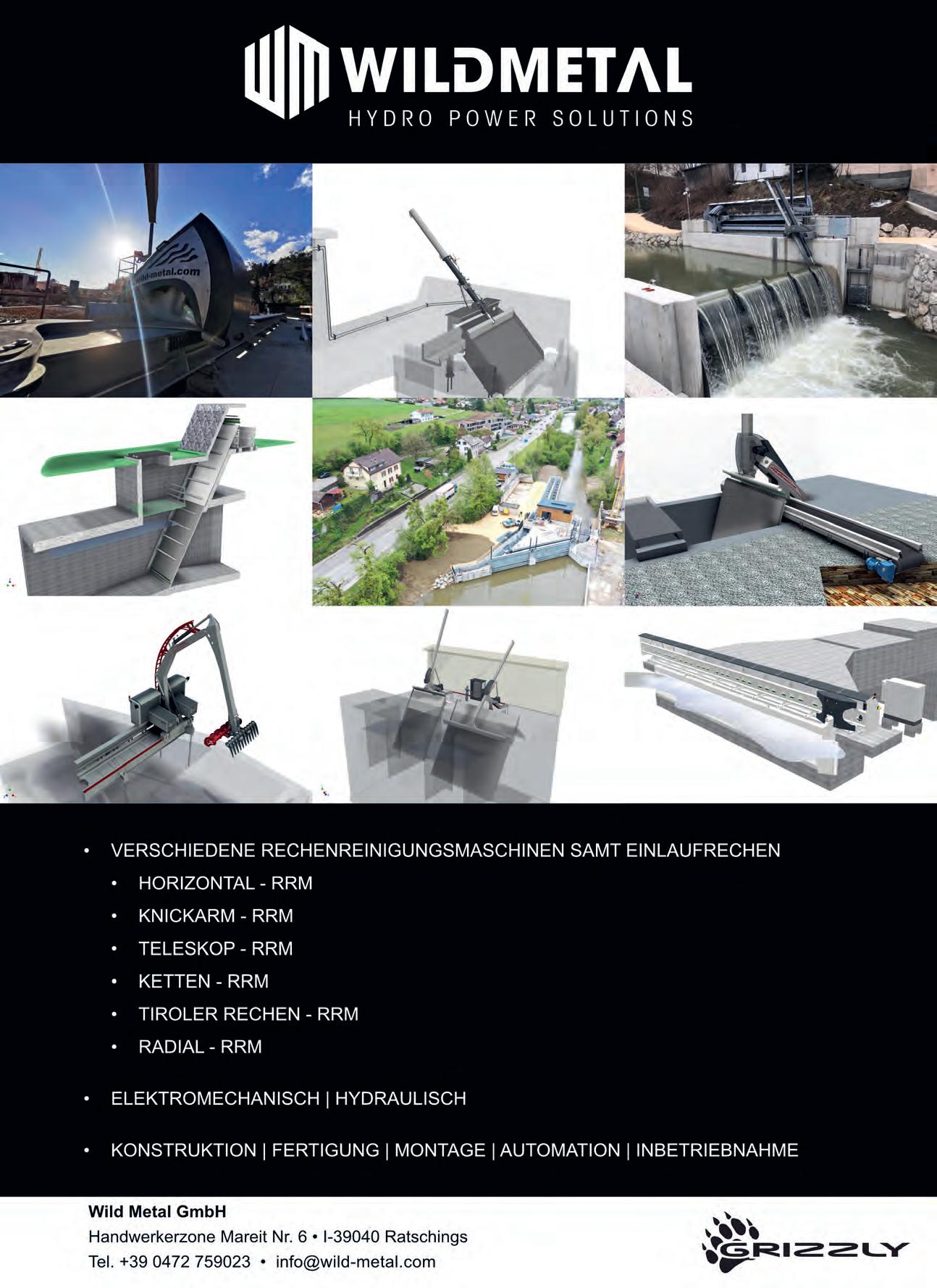 Die Wild Metal GmbH aus dem Südtiroler Ratschings gilt in der Wasserkraftbranche aus guten Gründen als renommierter Spezialist für qualitativ hochwertigen Stahlwasser- und Maschinenbau. Mit seinem umfassenden Portfolio deckt Wild Metal eine breite Palette an hydromechanischen Anwendungsszenarien ab. Zum Erfolgsrezept der Südtiroler Branchenexperten zählen maßgeschneiderte Lösungen, höchste technische Standards und ein flexibles Projektmanagement. Mittlerweile stellt der Stahlwasserbau von Wild Metal seine Praxistauglichkeit nicht nur im gesamten Alpenraum, sondern auch zigfach international unter Beweis. Speziell der Rechenreinigungssektor gibt einen guten Überblick über die technische Kompetenz der Südtiroler Stahlwasserbauprofis.