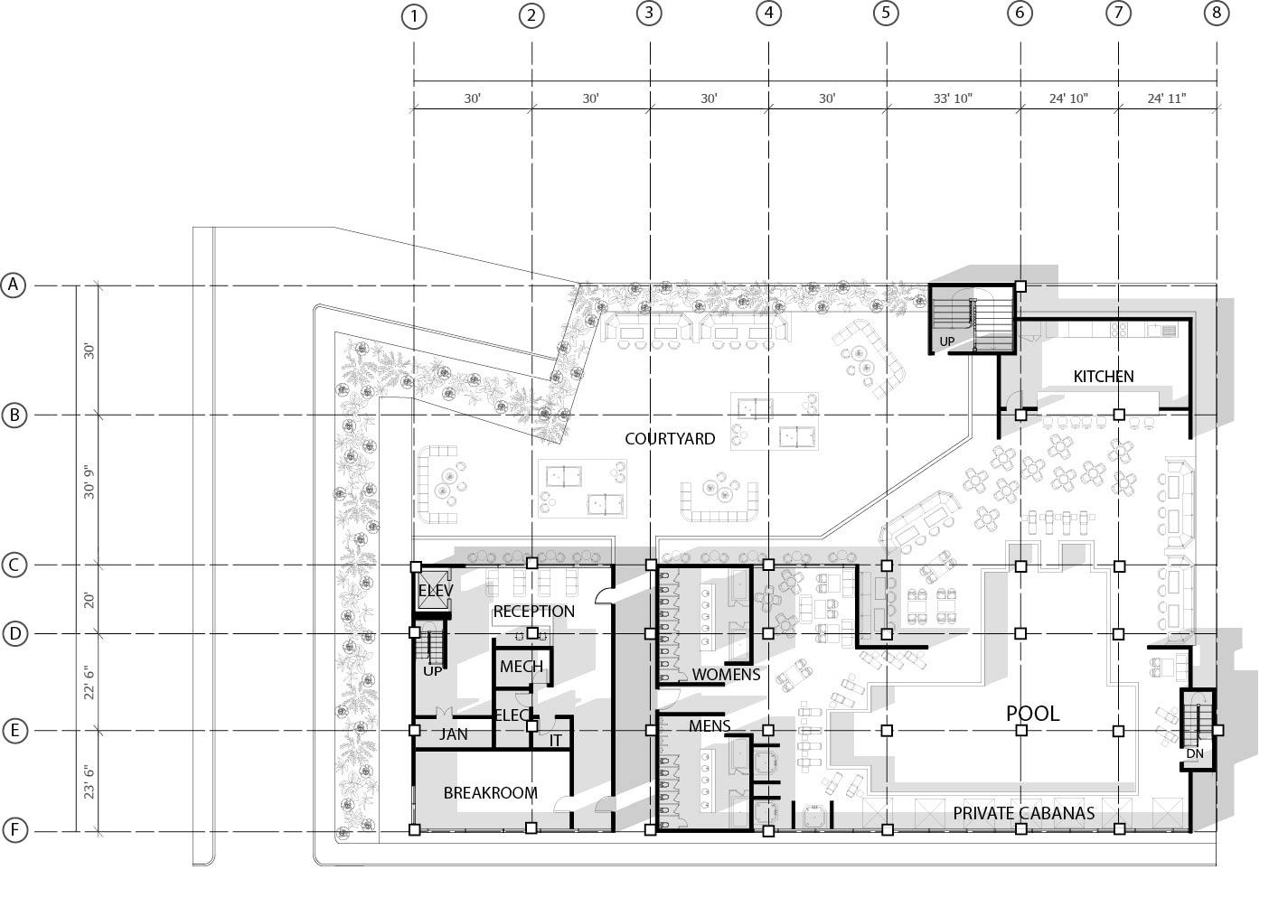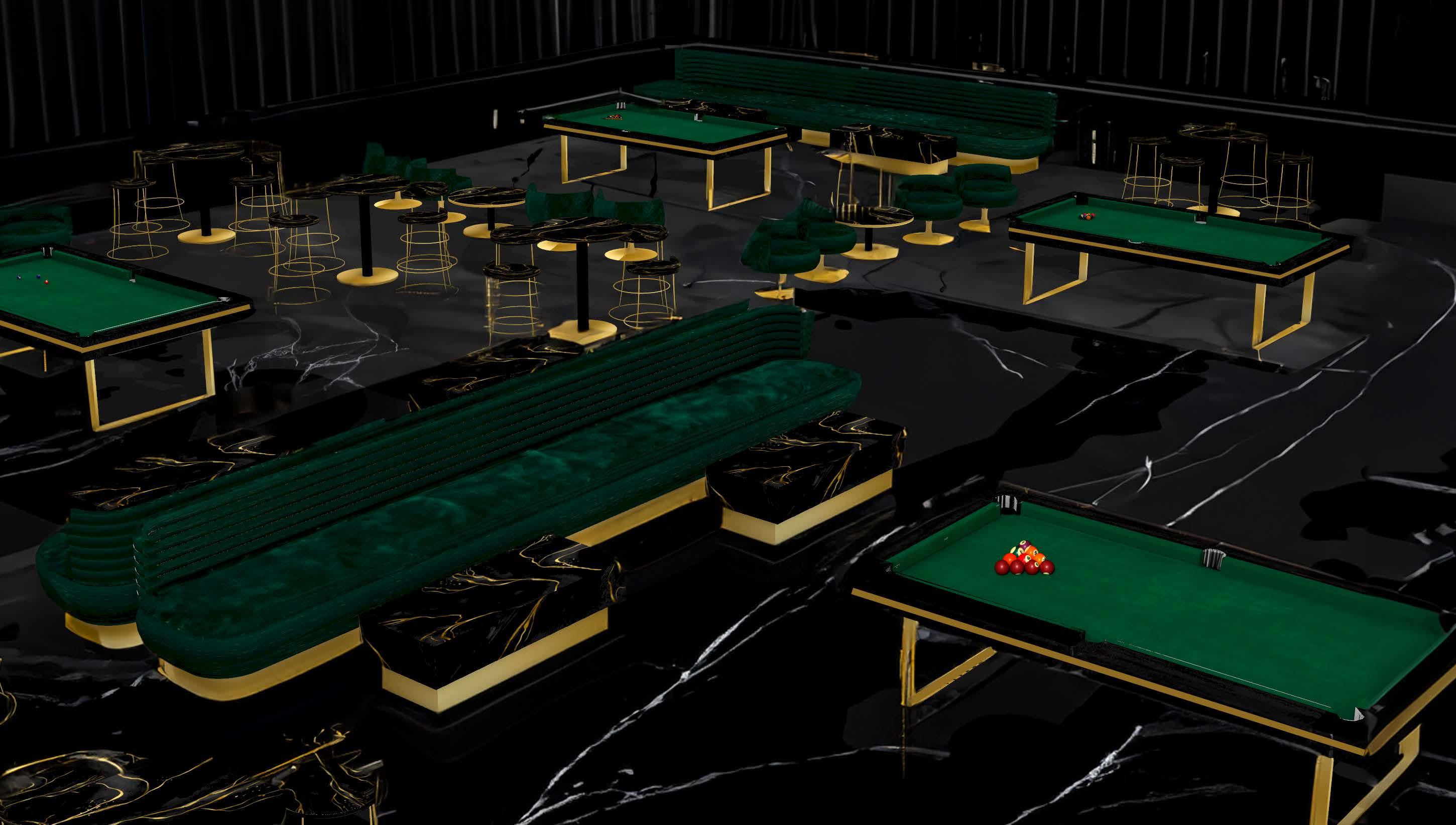 This project encourages students to draw design inspiration from everyday visuals like music videos, movies, and photography. After gathering precedents, a third program was integrated to enhance the luxury restaurant, rooftop bar, and pool hall concept. The selected third program is an underground nightclub featuring jazz and comedy shows, live bands, and a luxury car display with high-end brands like Lamborghini and Ferrari. The underground level includes the nightclub, a wraparound bar, and a glass-walled car showcase. The first floor is divided into a reception area and an indoor/outdoor pool with cabanas, hot tubs, and an outdoor kitchen. The second floor houses a billiards hall with 14 pool tables, a bar, and a balcony overlooking the courtyard and pool. A mezzanine VIP lounge offers an exclusive bar and overlooks the billiards hall. The project was developed using SketchUp, Rhino, Photoshop, Illustrator, and LookXAI, creating a cohesive, high-end experience blending luxury entertainment and design.
