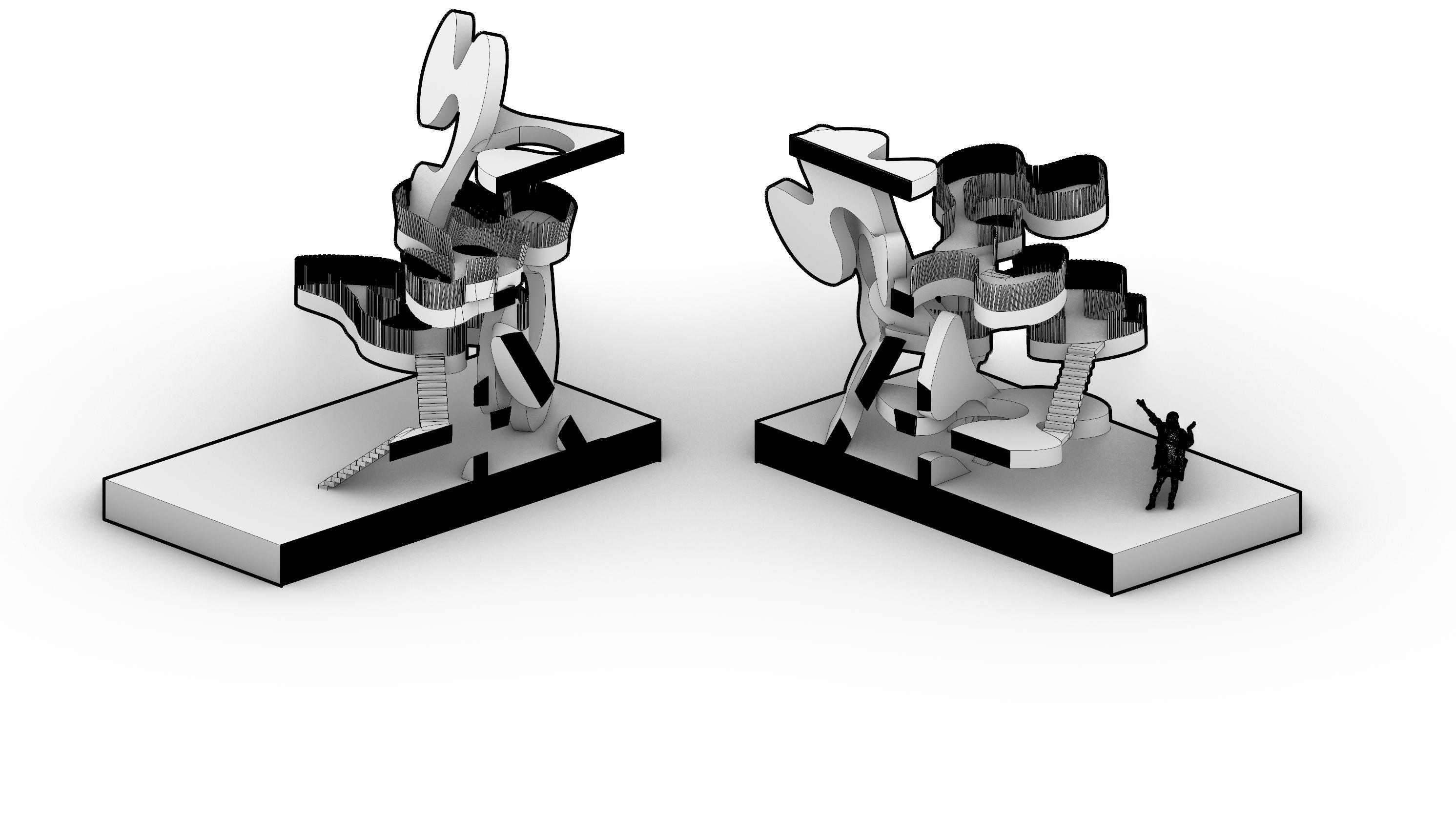 Utilizing Rhino, Grasshopper, and ZBrush, we explored innovative methods to generate architectural forms by manipulating a single original shape. Through parametric modeling, we experimented with unconventional and dynamic aggregations, challenging traditional perceptions of architecture. This process encouraged us to re imagine spatial experiences and engage with new ways of perceiving built environments.