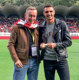 Nach zwei Jahren pandemiebedingter Zwangspause konnte die Südtiroler Sporthilfe heuer wieder ihre traditionelle und prestigevolle Galaveranstaltung austragen. Im Rahmen des Events, welches wie gewohnt in Zusammenarbeit mit dem Tagblatt „Dolomiten“ organisiert wurde, kam es zur Prämierung der erfolgreichsten Südtiroler Sportler*innen des vergangenen Kalenderjah res. Dem langjährigen FCS-Kapitän und jetzigen Funktionär der sportli chen Abteilung Hannes Fink wurde dabei eine Auszeichnung zu Ehren sei ner erfolgreichen Profikarriere überreicht. Der 33jährige Rittner trug über 20 Jahre lang das Trikot des FC Südtirol, bevor er im Mai dieses Jahres – nach dem historischen Aufstieg in die Serie B – die Fußballschuhe an den Nagel hing. Begleitet vom FCS-Geschäftsführer Dietmar Pfeifer, nahm Fink am 14. Oktober im H1 Event Space der Messe Bozen die prestigevolle Trophäe der Südtiroler Sporthilfe entgegen.