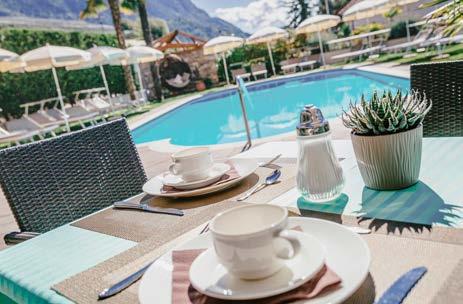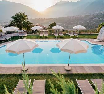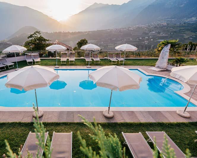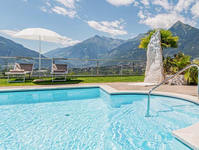 Entspannen Sie in unserem beheizten Panorama-Pool mit Ausblick auf die bezaubernde Bergwelt des Meraner Landes. Genießen Sie erfrischende Drinks und hausgemachte Kuchen auf unserer Terrasse, während Sie dabei neue Ausflugspläne für den nächsten Tag schmieden.