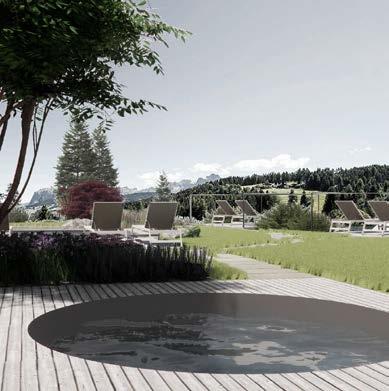 Alpine Pflanzen und herrlich duftende Kräuter, dazwischen ein neues Tauchbecken, verschiedene Wasserläufe und natürlich angelegte Rückzugsorte, perfekt zum Ausspannen und Runterkommen, perfekt um so richtig zu Regenerieren.