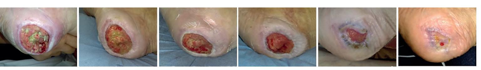 Ein tiefes, nekrotisches Dekubitalgeschwür an der Ferse, das sich über 6 Wochen verschlimmert hatte, wurde täglich mit einer 5-minütigen BIOPTRON®-Therapie behandelt, gefolgt von einer Standardreinigung. Innerhalb weniger Tage wurden ein Fibrinabbau und verbesserte Ulkusränder beobachtet. Innerhalb von 10 Tagen war eine Wundheilung zu beobachten, und das Geschwür verringerte sich deutlich in der Größe. Das Ulkus heilte in etwa 2 Monaten vollständig ab (Korian nurse home, Frankreich, 2018).