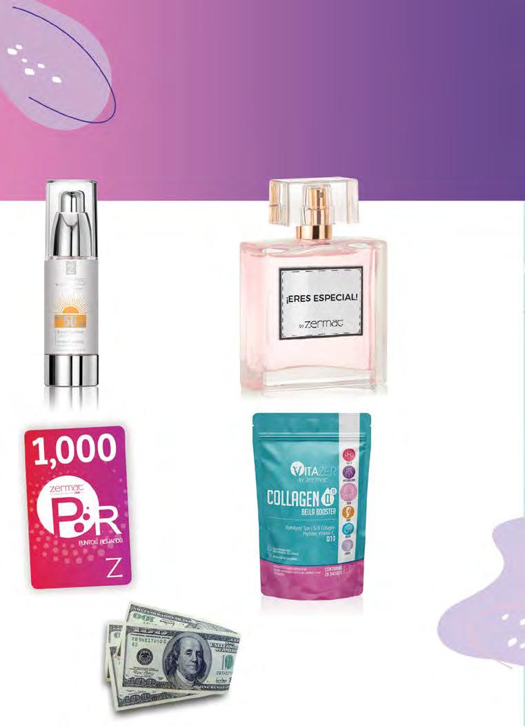 Special Shopper Your ideal Beauty Membership does exist! EXPERIENCE BOX Código 02110 CONTENTS: • 1 Pack Maximum Repair Privilege 3 Samples • 1 Sachet Collagen Q10 • 1 Cosmetic Bag • 1 Welcome Sample of Fragrances 10 pcs • 1 Seasonal Catalog • 1 Monthly Offers Catalog This month we have a DOUBLE coupon! we want to spoil you SPECIAL SHOPPERPRICE $10.00 VALUE AT $36.00 Their benefits: 20% discount on Zermat products Free Shipping on orders of $50.00 5% Cash Back on persona purchases $10.00 coupon on statement for your next purchase Your benefits: 20% profit regardless of your category $5.00 for each Beauty Box 100% of your Special Shopper paid purchases qualify You grow your network of promoters GENERAL RULES: • To receive benefits you must have a personal purchase during the month in which your preferred customer placed an order. • The coupon of $10.00 dollars can be redeemed in your purchase of the month of September. 20 #ZermatUSA Profits