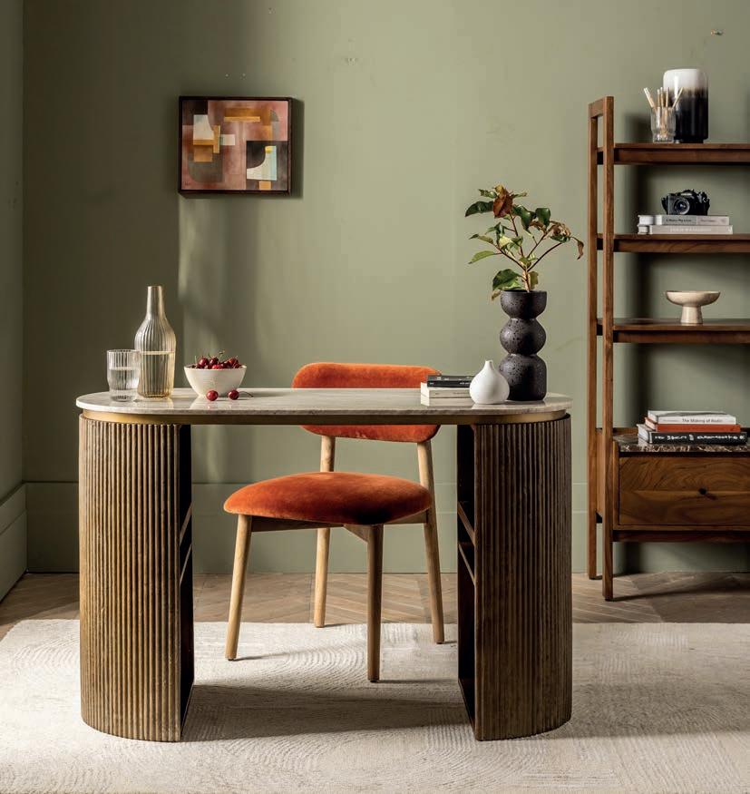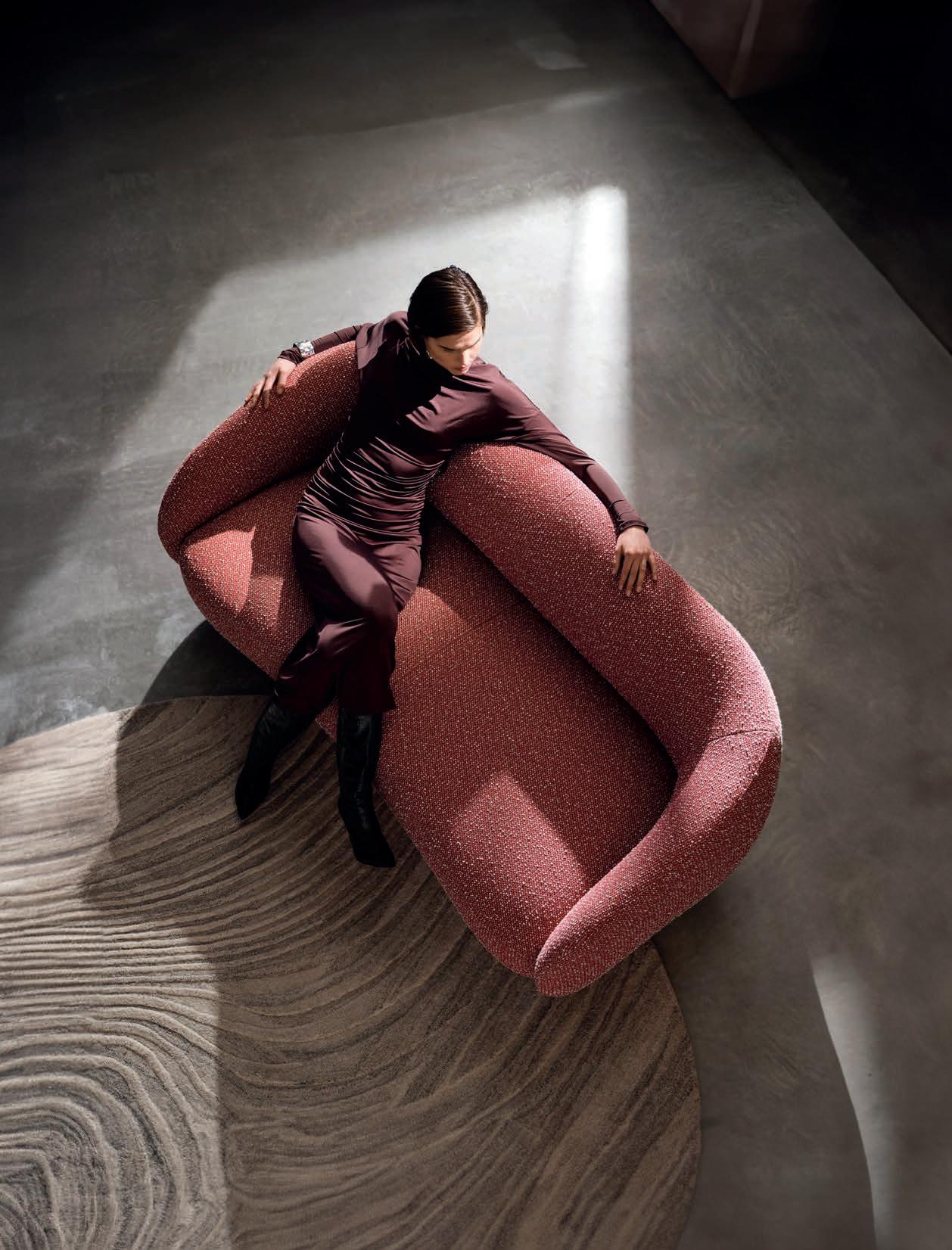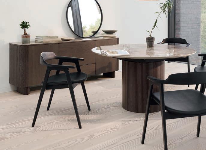 As an extension to the RF1903 Sideways Sofa, designed by Danish designer Rikke Frost, the RF1904 Sideways Lounge Chair exhibits a soft design language and subtle details. The new round Sideways Co ee Table has a wooden frame and a reversible tabletop with two di erent surfaces in either oak or walnut on one side and laminate on the other. The tabletop is also available in Italian marble.