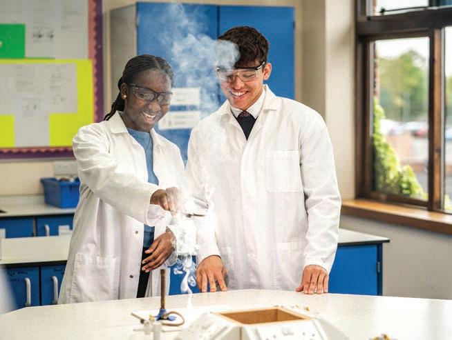 As part of the curriculum, students can choose to study both GCSEs and A-levels in Biology, Chemistry, Physics, Mathematics, Further Mathematics and Psychology. In addition, QE o ers an optional ‘supercurricular’ Medicine and Veterinary lesson, which is timetabled into the week for Sixth Form students and is run by the science department. These sessions include guest speakers from medical, veterinary and dental careers and provide an invaluable opportunity to learn about university applications, university study, and careers from those that have gone through the process and are currently working in these fields. Guest speakers in 2023-24 included a current GP, a Consultant, a Medicine Lecturer, a Cancer Researcher, a Sports Medicine Business Owner, and a current alumni studying medicine at Newcastle University. Outside of normal lessons, QE o ers a selection of nationally recognised and relevant courses onsite including the Level 2 Award in Basic Life Support and Anaphylaxis, Level 2 Paediatric First Aid, Level 2 Citizen Aid, Youth Mental Health Aware, National Pool