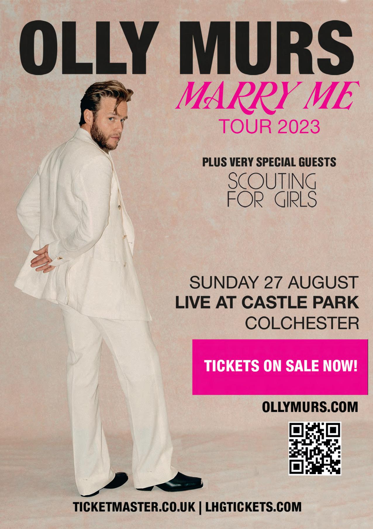 To get tickets to see Olly Murs on Sunday 27 August 2023 at Colchester, Castle Park head over to lhgtickets.com or ollymurs.com