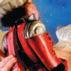 This red and pink ashmere cardigan by Cormio features ribbed detailing, a high round neck and flower buttons. £400 koibird.com
