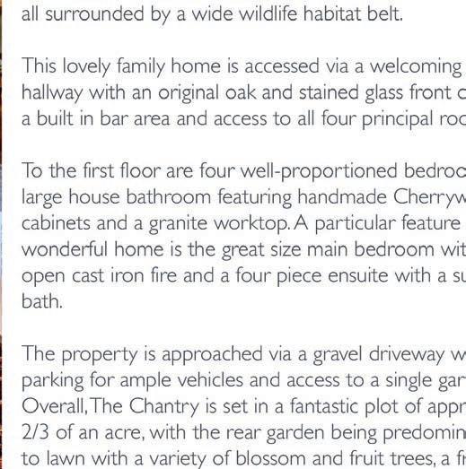 The stylish sitting room is an excellent size having twin sets of bi-folding doors opening out onto a fabulous, paved patio area enjoying wonderful views over the rear garden. The open plan breakfast kitchen room is a superb sociable living space being light and airy, with bi-folding doors leading out onto the aforementioned patio. The modern kitchen has high quality contrasting shaker style units fitted at floor and wall height with granite top worksurfaces incorporating an array of high spec integrated appliances.