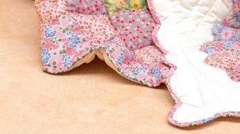 The SweetPea fabric quilt features a beautiful scallop design entirely patched from fi ve Liberty prints in a new sweet pea pattern. Hundreds of delicately hand cut patches are sewn together to make these quilts, £190. projektityyny.com
