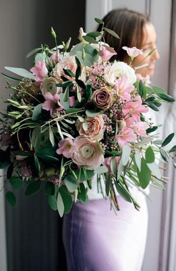 Delicate and pretty, the Vintage Blush bouquet mixes amnesia rose, pink mondial rose, hanoi clooni ranunculus, pink lisianthus, pink wax fl ower and seasonal foliage. wildatheart.com