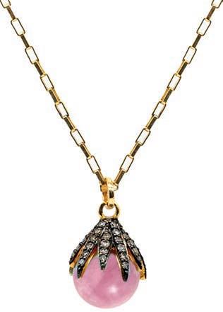 This classic drop necklace has a beautiful smooth round 10mm Pink Opal semi-precious stone bead held in place by a claw covered in Pavé set diamonds. £295 kirstielemarque.com