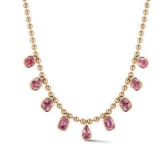 This classic drop necklace has a beautiful smooth round 10mm Pink Opal semi-precious stone bead held in place by a claw covered in Pavé set diamonds. £295 kirstielemarque.com