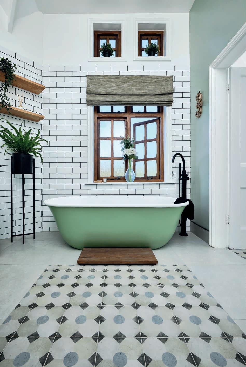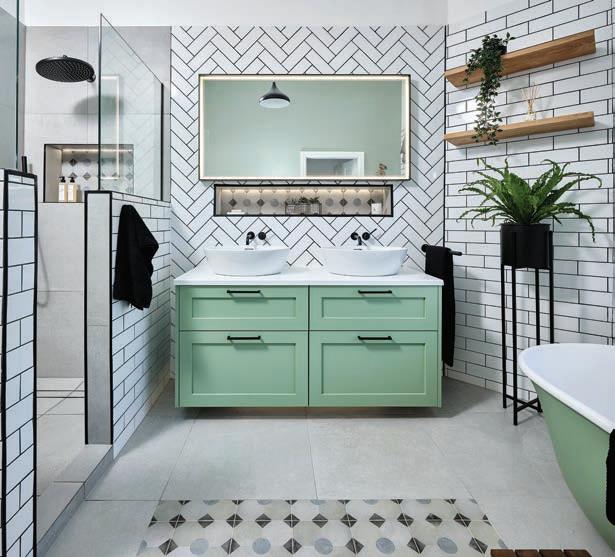 Green is proving to be a popular colour choice in bathrooms right now, from sage to avocado and everything in-between. This is usually incorporated in painted elements such as vanity units and baths as well as tiles.