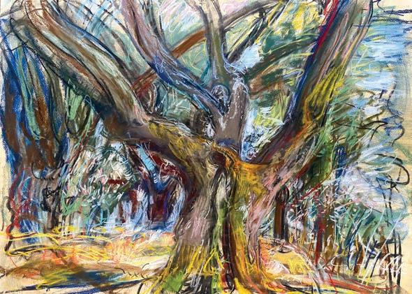 In May, Catherine Goodman: Do You Remember Me? opens in The Coach House. Artist Catherine Goodman (b. 1961) – founding Artistic Director of the Royal Drawing School – has been visiting Corfu for 12 years. As a repetitive ritual, every visit she returns to the same, isolated point of the island where a grove of ancient, gnarled olive trees is framed by the bright blue sea and sky behind, to draw what she sees.