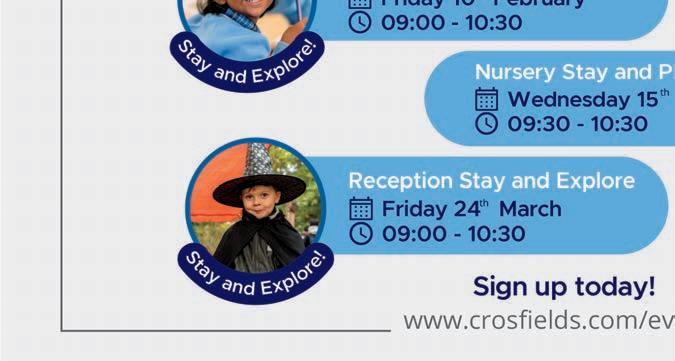 Visit us Visit us Scan to register www.crosfields.com/events Senior School Open Event Thursday 23 February 2023 18:00 - 20:00 rd Junior School Open Event Thursday 09 March 2023 10:00 - 12:30 th About).indd 1 15/07/2022 13:57 Discover how our pioneering International Baccalaureate curriculum can help your child to be truly Real World Ready. Join us at our open event on Friday 17 March Book your place today at stgwindsor org School bus service now available from Gerrards Cross and Maidenhead, including stops along the route in both Windsor and Datchet. ST GEORGE’S SCHOOL WINDSOR CASTLE Half Page 190x134 Windsor, Absolutely Berkshire 221209.indd 1 09/12/2022 09:25