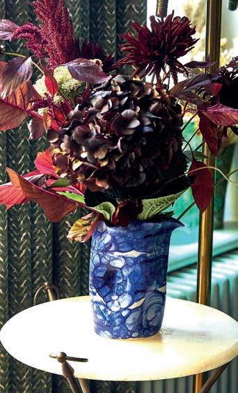These luxurious and sustainable candlesticks are hand-cra ed from reclaimed table legs and gilded in genuine royal blue dyed silver leaf. £140 webbandgrey.com