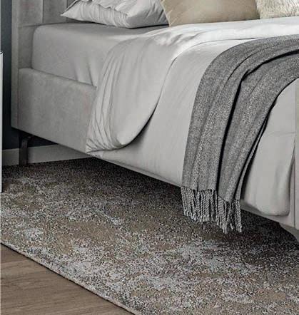 Bed: Sandö I Fabric: The Romo Group’s Jackie Dalmatian I Rug: Light Beige I Bed Linen: Vindstilla I Bedside table: Holme I Headboard: Rivö I Bed legs: Reling MADE BESPOKE WITH FABRICS FROM AND