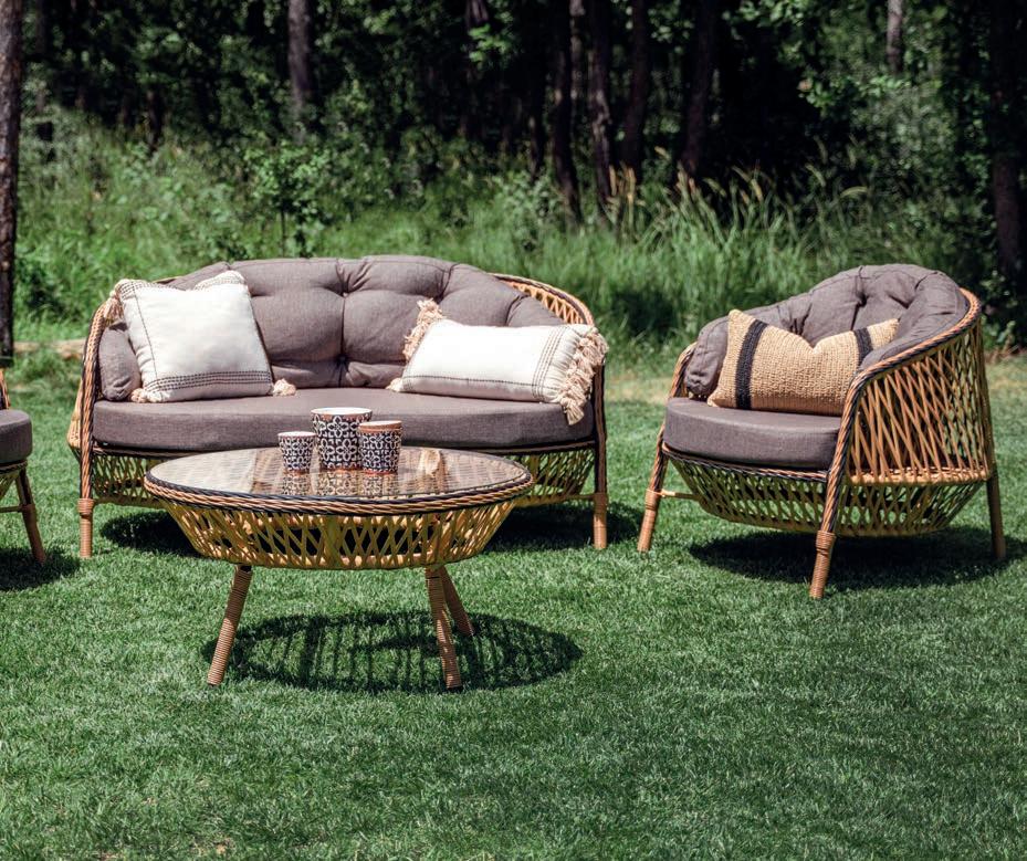 Stylish furniture is a must. We love this curved wood and metal Manila set, which is comfortable and hard-wearing with waterproof fabric and a sturdy feel. £1,200. sazy.com