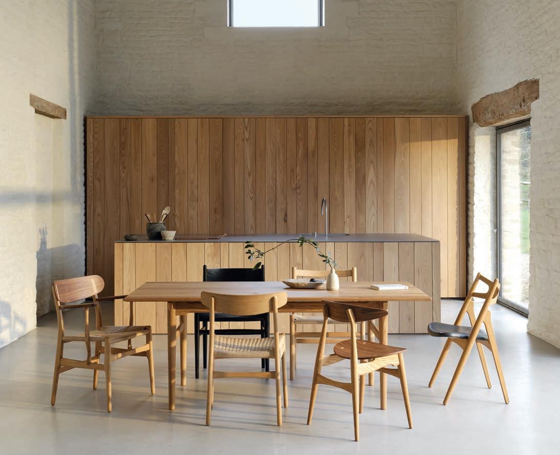 Børge Mogensen’s Outdoor series is characterized by its functional strength and timeless silhouettes. Developed in the 1970s, the series can be easily folded when not in use and is made from FSC®-certi ed teak wood, completing the classic Shaker-inspired style. | BM1771 Table, FSC™-certi ed teak, untreated, 194.5x78 cm, H72 cm, £1,309 | BM1871 Bench, FSC™-certi ed teak, untreated, £738 | CU BM1871 Cushion, Heritage Papyrus 18006, £236