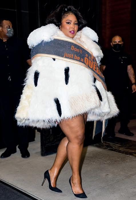 designed by Julien MacDonald including diamanté-studded wellington boots, worn on stage at Glastonbury (2007); and Janelle Monae’s ‘vulva pants’ designed by Duran Lantink for the music video ‘Pynk’ (2018).