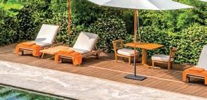 Børge Mogensen’s Outdoor series is characterized by its functional strength and timeless silhouettes. Developed in the 1970s, the series can be easily folded when not in use and is made from FSC®-certi ed teak wood, completing the classic Shaker-inspired style. | BM1771 Table, FSC™-certi ed teak, untreated, 194.5x78 cm, H72 cm, £1,309 | BM1871 Bench, FSC™-certi ed teak, untreated, £738 | CU BM1871 Cushion, Heritage Papyrus 18006, £236