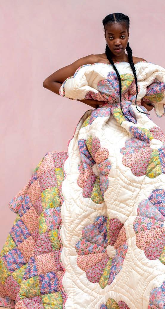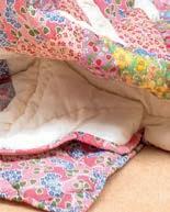 The SweetPea fabric quilt features a beautiful scallop design entirely patched from fi ve Liberty prints in a new sweet pea pattern. Hundreds of delicately hand cut patches are sewn together to make these quilts, £190. projektityyny.com