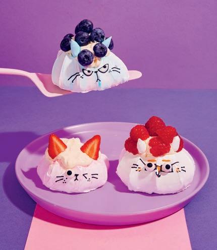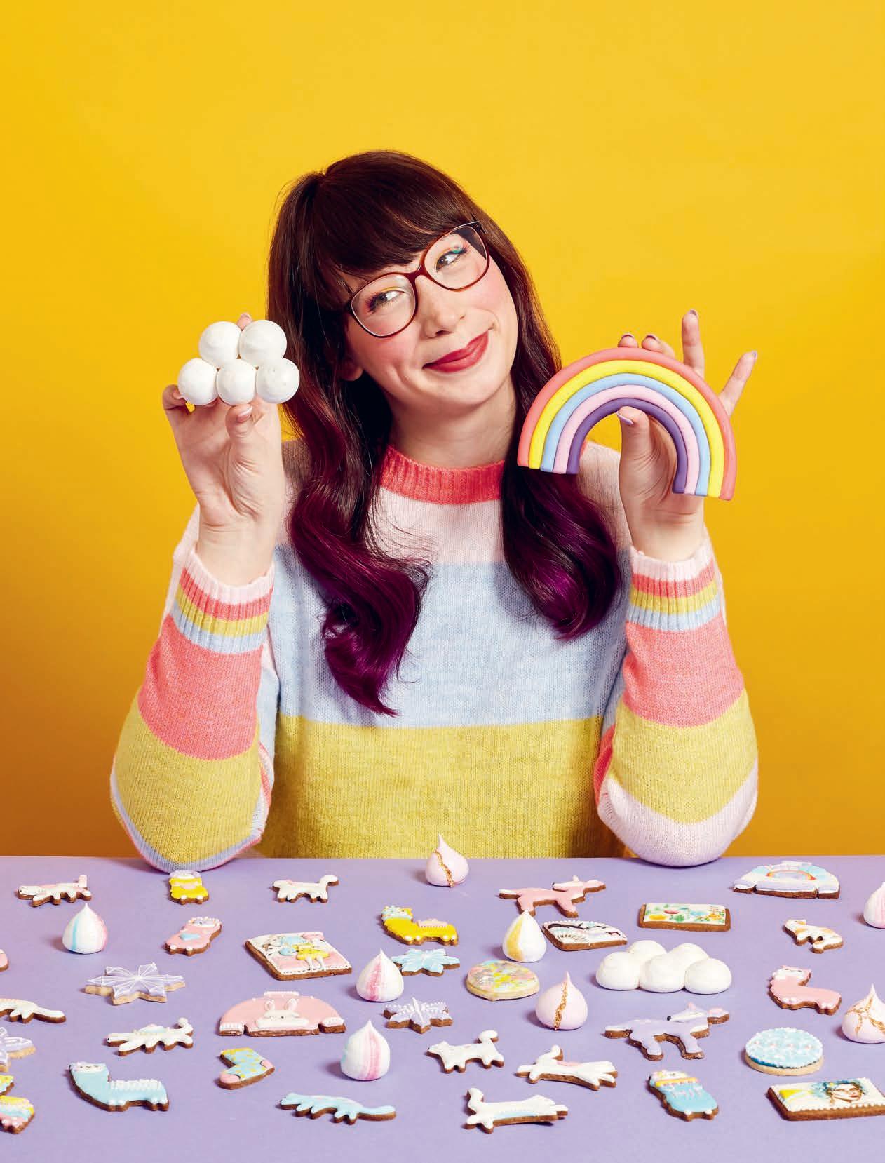 Each recipe has a Paw Rating to indicate its di culty, although Kim-Joy is a real advocate for making mistakes. “Cats are loved for their weird behaviour, like sleeping in bizarre positions, tongue bleps and staring blankly,” she says in the forward to the book. “It’s the same with baking: the weirder and less uniform the decoration, the more loved it will be. Have fun with it. Make ‘mistakes’. Focus on enjoying the process, not on how it turns out.”