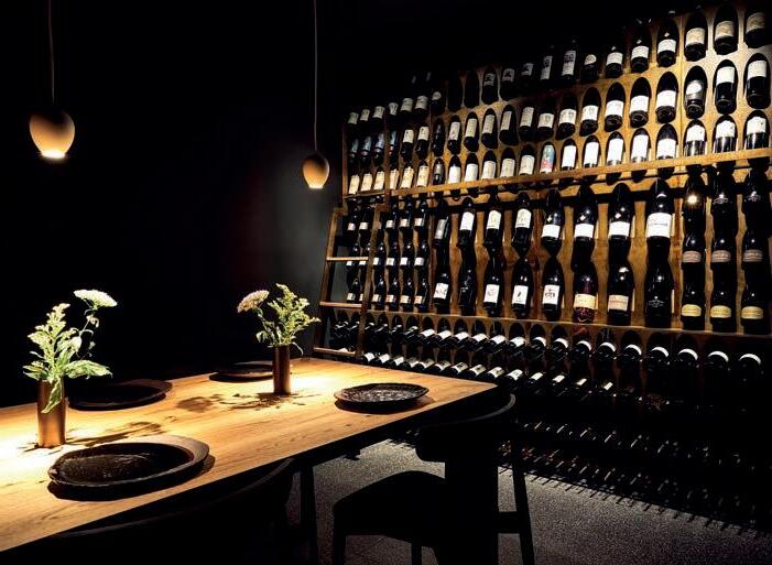 well as a complete wall of wine bottles.