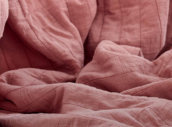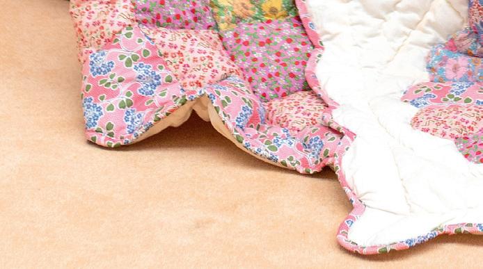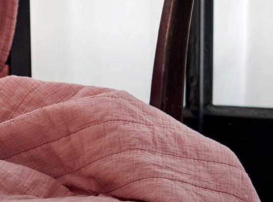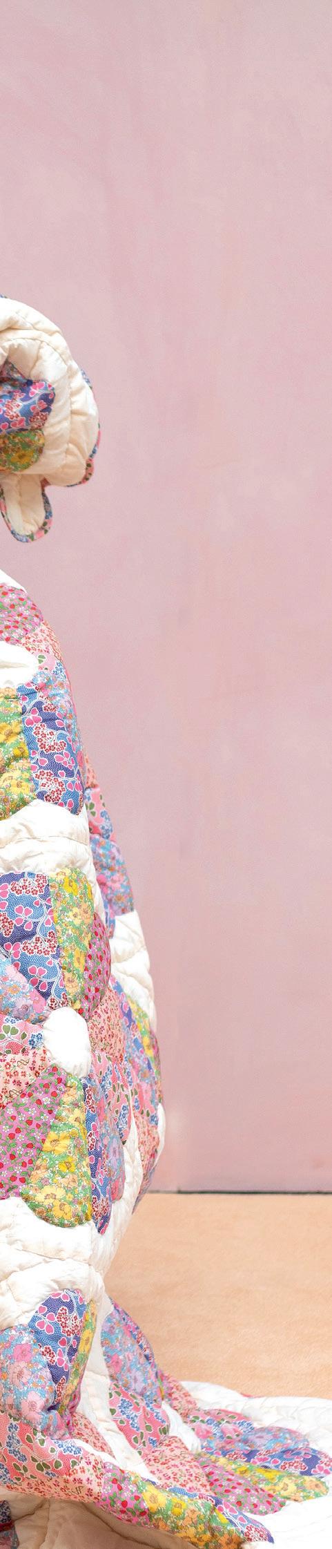 The SweetPea fabric quilt features a beautiful scallop design entirely patched from fi ve Liberty prints in a new sweet pea pattern. Hundreds of delicately hand cut patches are sewn together to make these quilts, £190. projektityyny.com