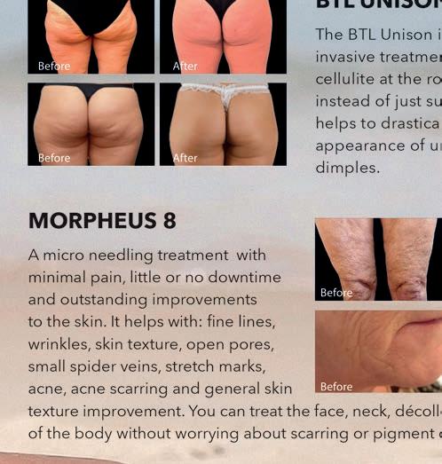 Look and feel more comfortable with your body concerns in the space of only six weeks. This treatment offers skin tightening with fat and cellulite reduction as well as permanent fat removal for stubborn resistant areas. The next generation, multi-platform transformation bodylift offered exclusively at Medispa Group can combine a number of super technologies depended upon your specific concerns, using the very latest cutting-edge technologies such as Coolsculpting Elite, Exilis Elite, Emsulpt, Morpheus8, BTL Unison and Emerald Laser to make you look and feel fantastic !