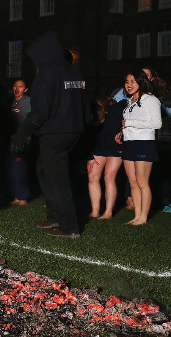 A total of 35 brave students and sta , including headmistress Jane Gandee, walked across hot coals to raise money and awareness for these important charities.